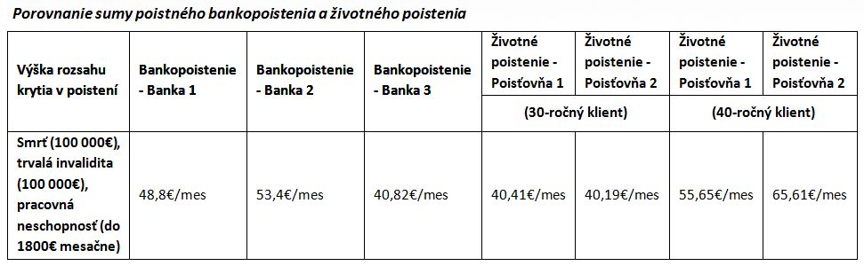 Poistné v produktoch ponúkaných bankou sa stanovuje ako percento z výšky čerpaného úveru alebo ako percento z výšky mesačnej splátky, pričom nezáleží na veku klienta. V životnom poistení cena poistenia závisí od mnohých parametrov, ktorými sú napríklad vek, zamestnanie, športová a záujmová činnosť a takisto zdravotný stav. Bankový produkt je preto lacnejší pre starších klientov, naopak menej výhodný je pre mladých ľudí.