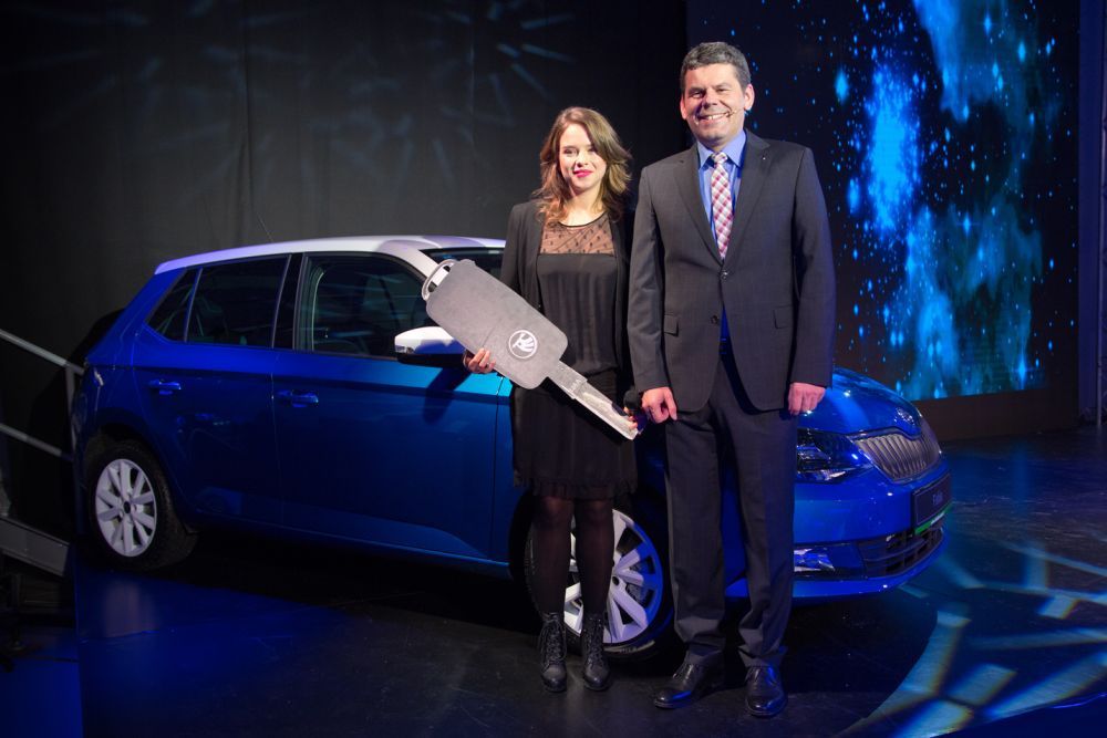 Nová Fabia už našla aj svoju prvú majiteľku. Je ňou talentovaná herečka Kristína Svarinská, ktorá si včera od zástupcov spoločnosti ŠKODA AUTO Slovensko prevzala kľúče od nového automobilu. Farebnú kombináciu pomohli mladej herečke vybrať fanúšikovia na Facebooku ŠKODA AUTO Slovensko. „Nová Fabia je krásne a štýlové autíčko, navyše veľmi praktické. Žiarivá modrá metalíza s bielou strechou je neprehliadnuteľná kombinácia, ktorá si ma hneď získala. Už sa veľmi teším na prvé kilometre,“ uviedla Kristína Svarinská.