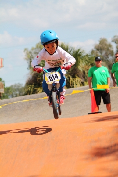 Len 5-ročný Ritsu z japonského tímu skáče na Majstrovstvách sveta v trikoch na bicykli, ktoré sa konali na Floride. Bicykle prispôsobené na túto disciplínu nemajú pedále ani brzdy, malí pretekári zasa nemajú strach. Foto: SITA/AP