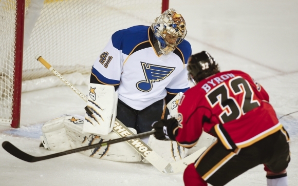 Brankár Jaroslav Halák sa po chorobe vrátil vo veľkom štýle. V zápase proti Calgary chytil všetkých 33 striel a jeo St. Louis získalo hladké víťazstvo 5:0. Pre ružinovského odchovanca to bol tretí shutout v sezóne a 28. v kariére. Prikrášlil ho aj jednou asistenciou a vyhlásili ho za prvú hviezdu zápasu. Foto: SITA/AP