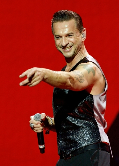 Spevák Dave Gahan z britskej kapely Depeche Mode na koncerte v Berlíne. V rámci turné "The Delta Machine Tour" skupina zahrala aj v Bratislave, kam sa vo februári znova vráti. Foto: SITA/AP