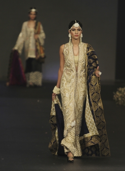 Modelka predvádza kreáciu na Týždni módy, ktorú zorganizoval Pakistanská módna rada. Foto: SITA/AP