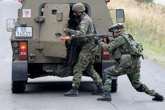 Vojenské cvičenie 22. mechanizovanej práporovej skupiny Spoločná výzva 2013 za účasti medzinárodného previerkového tímu NATO vo výcvikovom priestore v Lešti. Foto: SITA/OS SR
