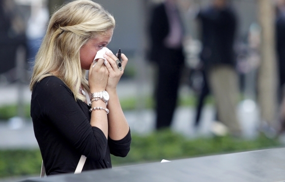 Kayla Fallon, dcéra William Fallona, ktorý pred 12. rokmi zahynul pri teroristických útokoch na newyorské dvojičky, na spomienkovom ceremoniále. Foto: SITA/AP