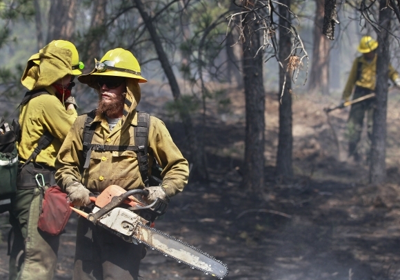 Americkí dobrovoľníci bojujú s obrovským požiarom, ktorý zachvátil Čierny les v Colorade. Súčasný požiar spôsobil najväčšie škody v histórii tohto amerického štátu. Foto: SITA/AP