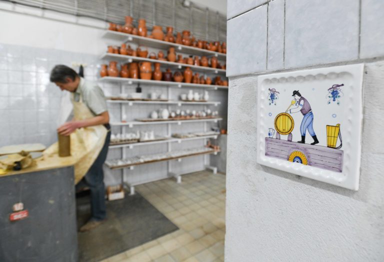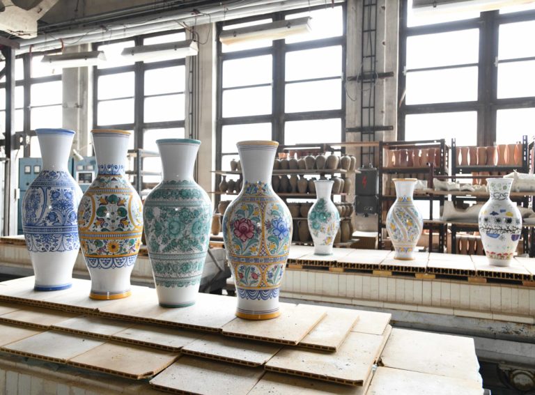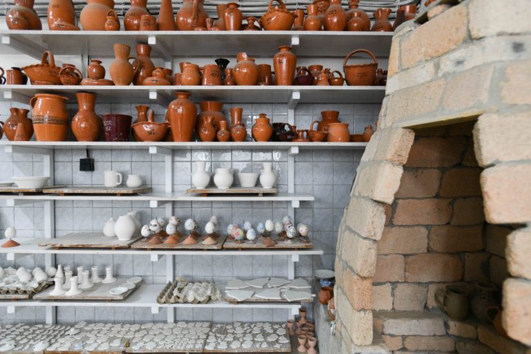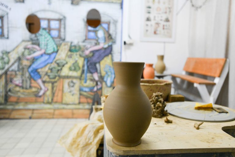 Pohľad do priestorov výroby v Modre, na výrobky Slovenskej ľudovej majoliky. Slovenská ľudová majolika si pripomína 140. výročie jej založenia. Modra, 30. marec 2023. Foto: SITA/Martin Medňanský.