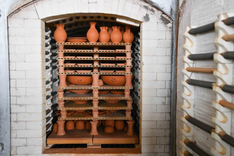 Vypaľovacia pec na keramiku v priestoroch výroby Slovenskej ľudovej majoliky. Slovenská ľudová majolika si pripomína 140. výročie jej založenia. Modra, 30. marec 2023. Foto: SITA/Martin Medňanský.