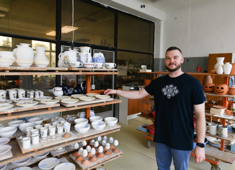 Riaditeľ Slovenskej ľudovej majoliky Filip Fuňa vo výrobných priestoroch Slovenskej ľudovej majoliky v Modre. Slovenská ľudová majolika si pripomína 140. výročie jej založenia. Modra, 30. marec 2023. Foto: SITA/Martin Medňanský.