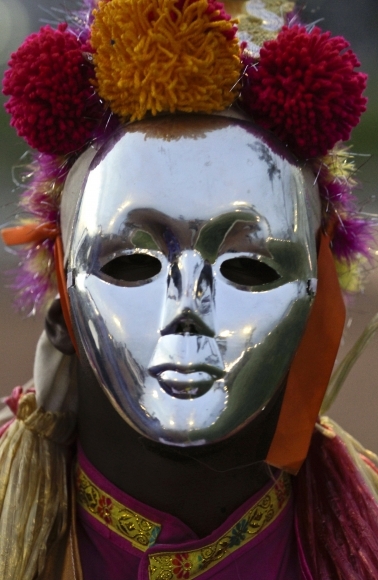 Maskovaný tanečník na slávnostnom otvorení rekonštruovanej časti Panamského pobrežia. Foto: SITA/AP