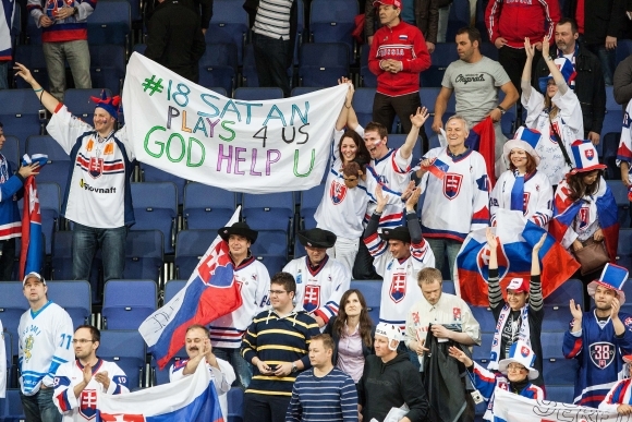 Slovenskí fanúšikovia po zápase Slovensko - USA na hokejových MS. Foto: SITA/Jozef Jakubčo