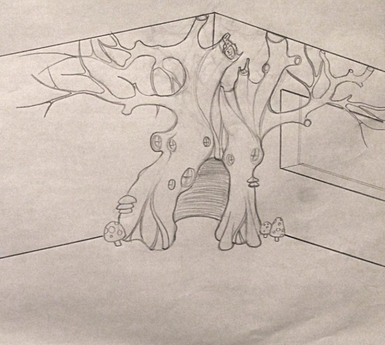 Najprv si chlapík nakreslil základ na stenu. imgur.com