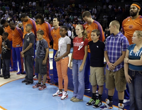 Basketbalisti New Yorku Knocks spolu s celou halou v Charlotte si pred zápasom s domácimi Bobcats uctili obete teroristických útokov v Bostone. Foto: SITA/AP Photo/Chuck Burton