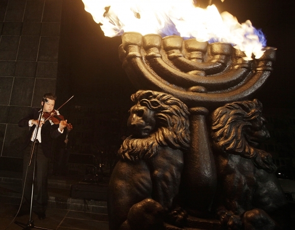 Huslista Julian Rachlin z Izraelského filharmonického orchestra počas spomienkovej ceremónie k 70. výročiu povstania vo Varšavskom gete, jednej z najväčších protestných akcií proti nemeckým nacistickým okupantom v rámci druhej svetovej vojny. Foto: SITA/AP Photo/Czarek Sokolowski