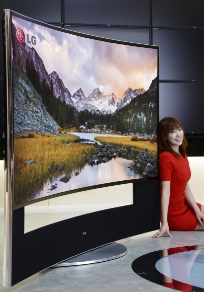 Nový zakrivený televízor od LG má uhlopriečku 105 palcov a ultra-HD rozlíšenie. LG aj konkurent Samsung tvrdia, že ich zakrivené TV majú štvornásobne vyššiu ostrosť ako bežné HD televízory. Foto: SITA/AP