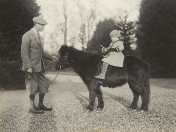 Doteraz verejne nepublikovaná fotografia britskej kráľovnej Elizabeth II. na poníkovi Peggym v roku 1930. Kráľovský palác zverejnil sériu dobových fotografií na počesť narodenia princa Juraja. Foto: SITA/AP