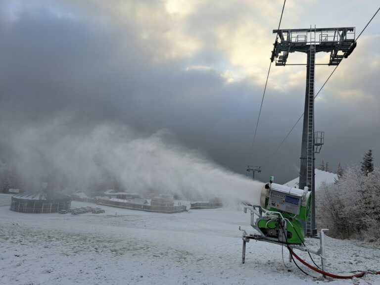 Zasnežovanie svahu v lyžiarskom stredisku v Tatranskej Lomnici vo Vysokých Tatrách. Vysoké Tatry, 14. november 2024. Foto: SITA/Mária Frisová