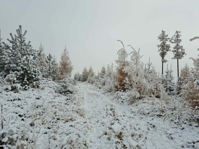 Zasnežený les v ochrannom obvode Tatranské Matliare Správy Tatranského národného parku (TANAP) v lokalite so zásahovou činnosťou po dvadsiatich rokoch od víchrice Alžbeta, ktorá sa prehnala Vysokými Tatrami. Vysoké Tatry, 14. november 2024. Foto: SITA/Mária Frisová