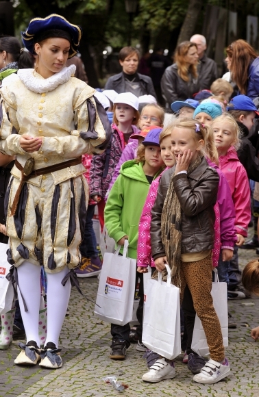 Deti prvých ročníkov základných škôl z mestskej časti Bratislava-Staré Mesto počas privítania staromestských prvákov do rádu žiackeho. Foto: SITA/Ján Slovák