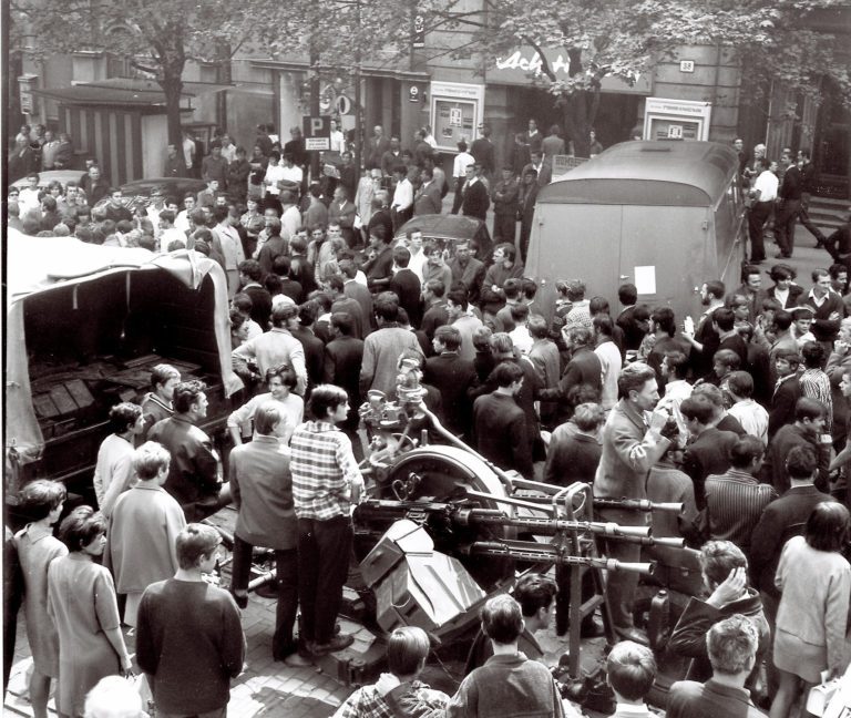 Bratislava 21. august 1968 - miesto pri budove FFUK kde Danku Košanovú zasiahla smrtiaca strela. Foto: Ján Lörincz/SITA.