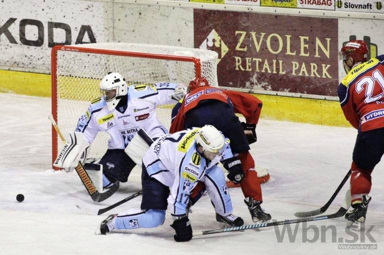 Marek Šimko (uprostred) z HKM Zvolen počas 23. kola Tipsport extraligy medzi HKM Zvolen - HK Nitra. Zvolen, 16. november 2014. Foto: SITA/Ján Viazanička