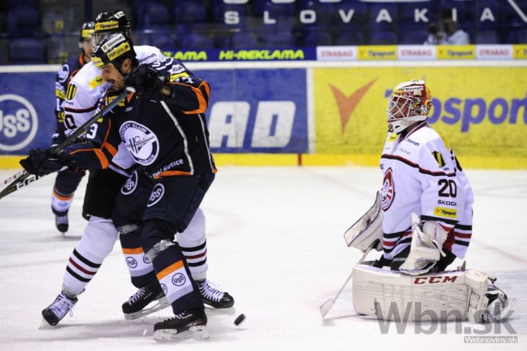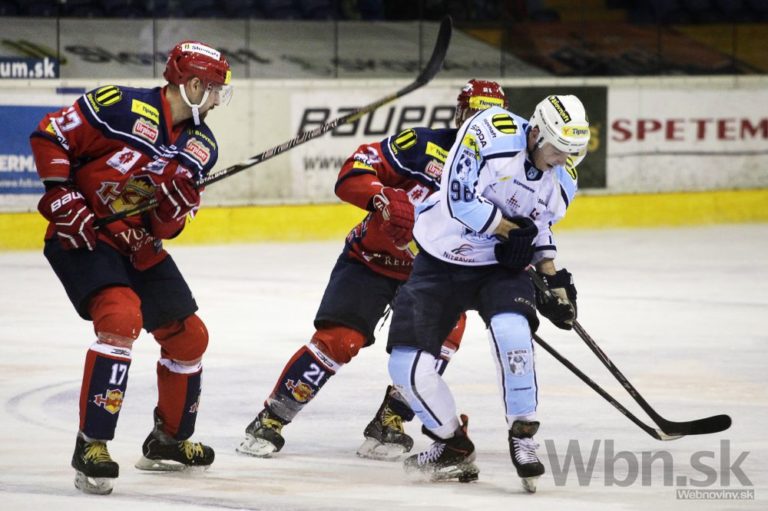 Zľava: Tomáš Zigo z Banskej Bystrice, Peter Sojčík z Košíc a Mislav Rosandič z Banskej Bystrice počas 23. kola hokejovej Tipsport extraligy v zápase medzi HC Košice - HC'05 Banská Bystrica. Košice, 16. november 2014. Foto: SITA/Tibor Zmak