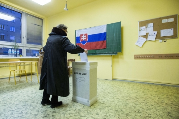 Prvá volička v jednej z volebných miestností v bratislavskom Ružinove. V sobotu pokračujú v poradí štvrté voľby poslancov a predsedov do orgánov samosprávnych krajov VÚC od vzniku SR. Foto: SITA/Jozef Jakubčo