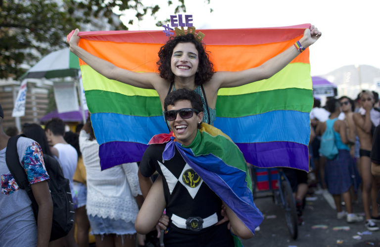 Účastníci s dúhovou vlajkou počas Gay Pride Parade v Rio de Janeiro. Foto: SITA/AP