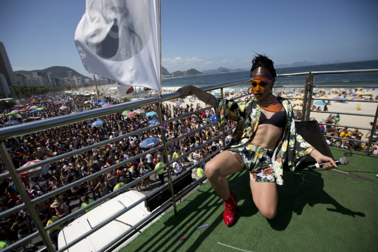 Speváčka vystupuje na streche párty autobusu počas Gay Pride Parade v Rio de Janeiro. Foto: SITA/AP