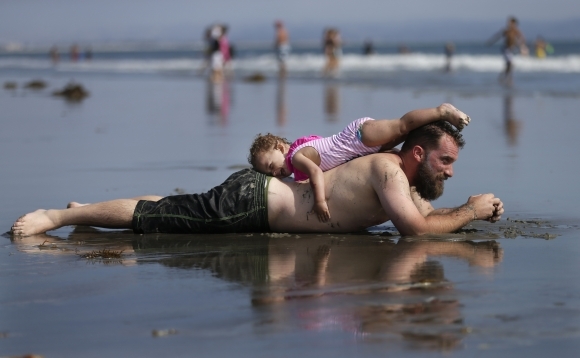 Horúčavy tradične spaľujú aj slnečnú Kaliforniu. Jej obyvatelia však majú, na rozdiel od Slovákov, možnosť ochladiť sa na nádherných plážach. Foto: SITA/AP