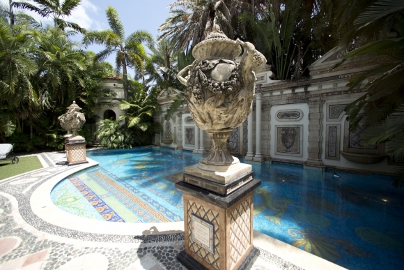 Dekoratívny bazén v bývalej Versaceho vile na Miami Beach, ktorá ide 17. augusta do dražby. Hoci dom už od roku 2000 jeho rodine nepatrí, predávajúci dúfajú, že spojenie so slávnym menom zvýši jej cenu. Práve na schodoch tejto vily zavraždil v roku 1997 vtedy 50-ročného Gianniho Versaceho pri jeho návrate z prechádzky sériový vrah Andrew Cunanan. Foto: SITA/AP