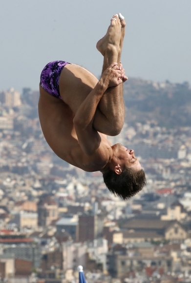 Ukrajinčan Iľja Kvaša počas skoku z 3-metrovej dosky na svetovom šampionáte v plávaní v Barcelone. Foto: SITA/AP