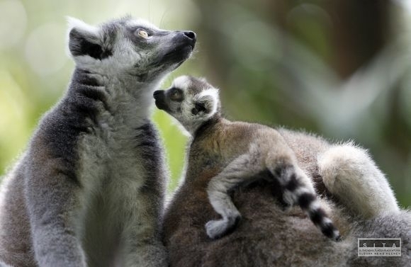 Dvojtýždenné mláďa lemura spolu s matkou v v singapúrskej ZOO. Foto: AP Photo/Wong Maye-E