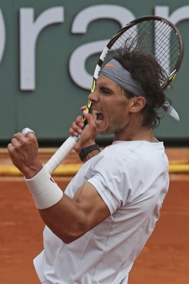 Španiel Rafael Nadal sa raduje z víťazstva v prvom kole grandslamového turnaja Roland Garros v Paríži. Nemca Brandsa porazil 4-6, 7-6, 6-4 a -3. V druhom kole ho vyzve Martin Kližan. Foto: SITA/AP