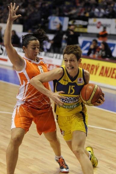 Silvia Dominguez z Jekaterinburgu (vľavo) a Miljana Bojovič z Košíc v zápase A skupiny 3. kola basketbalovej Euroligy žien medzi Good Angels Košice a UMMC Jekaterinburg. Košičanky pred takmer 8000 divákmi siahali na zázrak, v polčase viedli o 15 bodov. Nakoniec ale prehrali 68:72. Foto: SITA/Ivan Fleischer