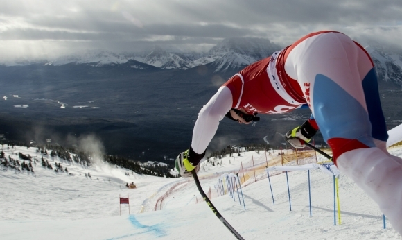Švajčiarska zjazdárka Fabienne Suterová na štarte pretekov v kanadskej provincii Alberte. Foto: SITA/AP Photo/The Canadian Press, Jonath