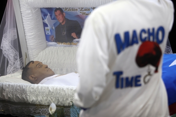 Stovky obyvateľov Portorika vzdali v športovej hale v metropole krajiny v San Juane posledný hold zosnulému boxerovi Héctorovi "Machovi" Camachovi. Päťdesiatročného Portoričana v utorok 20. novembra v San Juane vážne postrelili, dlho ležal v kóme a v sobotu ho lekári definitívne odpojili od podporných prístrojov. Na spomienke sa zúčastnilo množstvo významných osobností zo sveta boxu vrátane 20 bývalých majstrov sveta. Foto: SITA/AP Photo/Ricardo Arduengo