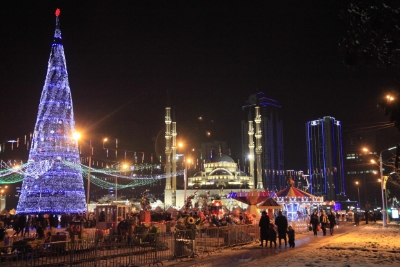 Obyvatelia čečenského hlavného mesta Groznyj sa pripravujú na veľkolepé privítanie roku 2013. Foto: SITA/AP Photo/Musa Sadulayev