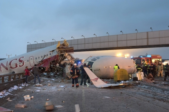 Ruský Tupolev Tu-204 minul pri pristávacom manévri na moskovskom letisku Vnukovo pristávaciu dráhu a skončil na priľahlej diaľnici. Haváriu neprežili najmenej štyria ľudia. Medzi obeťami sú aj dvaja piloti a 27-ročná žena, ktorá podľahla zraneniam počas prevozu do nemocnice. Ďalšie tri osoby sa nachádzajú v kritickom stave. Incident sa stal o 16:35 hod. miestneho času, keď podľa medializovaných správ zlyhal druhý pokus na pristátie. Foto: SITA/AP
