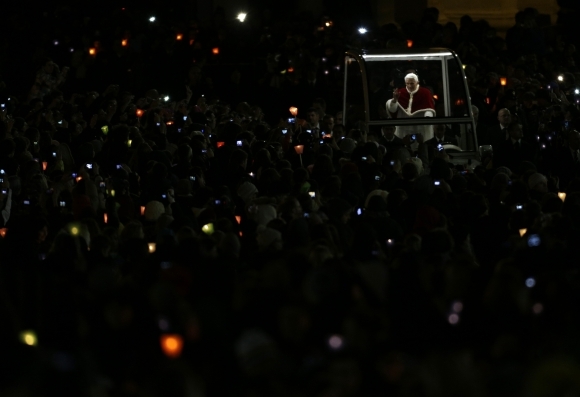 Pápež Benedikt XVI. požehnal na Námestí Sv. Petra v Ríme veriacim, ktorí pricestovali na 35. ročník stretnutia mladých ľudí. Foto: SITA/AP Photo/Alessandra Tarantino