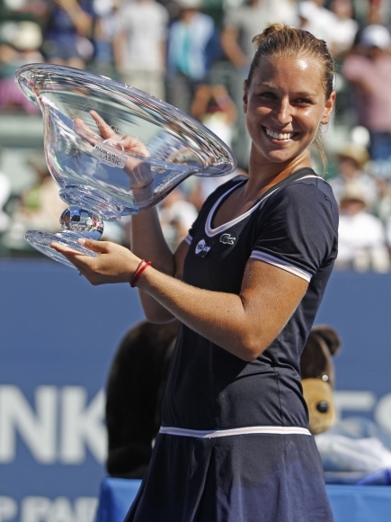 Slovenská tenistka Dominika Cibulková vo svojom ôsmom singlovom finále na hlavnej profesionálnej úrovni získala tretí titul. V nedeľňajšom zápase o trofej vo dvojhre na turnaji WTA Bank of the West Classic v americkom Stanforde zvíťazila nad jednoznačne favorizovanou poľskou rovesníčkou Agnieszkou Radwanskou, jednotkou "pavúka", po obrovskej dráme za 2,5 hodiny 3:6, 6:4, 6:4. Foto: SITA/AP