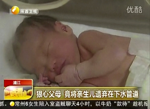 Čerstvo narodené bábätko, ktoré v Číne poslala 22-ročná slobodná matka do odpadu, zázračne prežilo. Ani pobyt v odpadovej rúre nezanechal na ňom zásadné negatívne stopy. Foto: SITA/AP