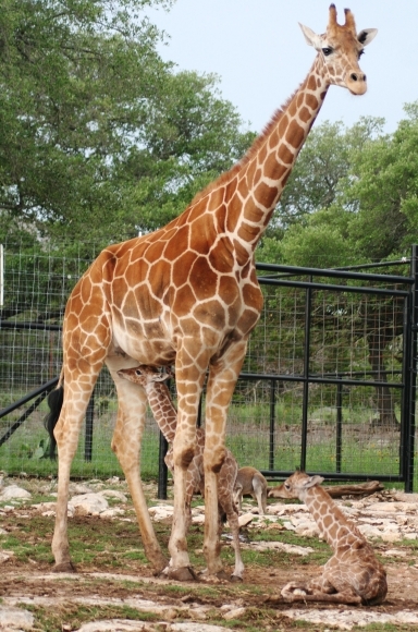 V meste New Braunfels v americkom Texase sa narodili žirafie dvojčatá Wasswa a Nakato. Je to iba druhý krát, čo sa v USA narodili žirafám v zajatí dvojičky. Foto: SITA/AP