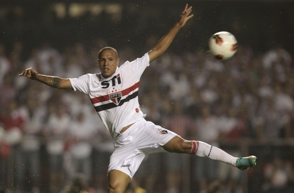 Futbalista Luis Fabiano z brazílskeho klubu FC Santos počas zápasu proti čilskému tímu Universidad Catolica v rámci súťaže Copa Sudamericana. Foto: SITA/AP Photo/Andre Penner