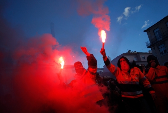 Podnikateľská nálada v Portugalsku klesla v novembri na rekordne nízku úroveň, keďže parlament v tomto mesiaci schválil rozpočet na rok 2013, v ktorom sa zaviazal k najvyššiemu zvyšovaniu daní v histórií krajiny. Rozpočet zároveň ráta s tretím rokom recesie po sebe. Medzitým v uliciach Lisabonu protestovali zamestnanci prístavov. Demonštráciu zvolali odborové zväzy, ktoré tvrdia, že najnovšie úsporné opatrenia ich pripravia o prácu. Foto: SITA/AP Photo/Francisco Seco