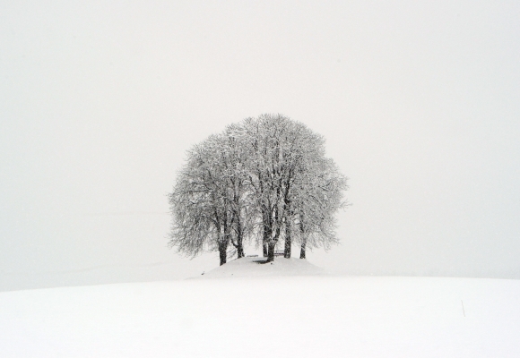 Pohľad na zasnežený strom na poli neďaleko švajčiarskeho mesta Zürich. Foto: SITA/AP Photo/Keystone/Steffen Schmidt