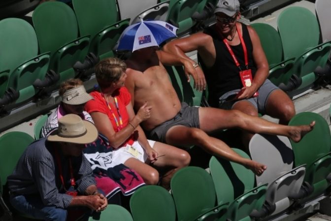 Austrálsky kriketový hráč Michael Hussey si poriadne vyskočil počas zápasu proti výberu Srí Lanky v Sydney. Foto: SITA/AP Photo/Rob Griffith