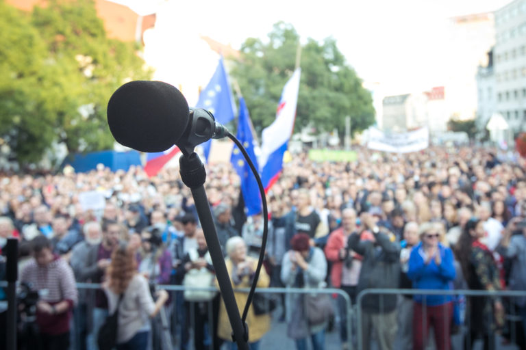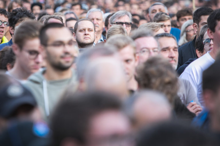 Účastníci 3. protikorupčného pochodu s názvom Zakročme spolu proti korupcii na Hviezdoslavovom námestí. Bratislava, 25. september 2017. Foto: SITA/Diana Černáková