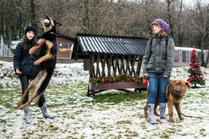 Malý chlapec sa hrá so stuhou pri účastníkoch 5. ročníka tradičného behu Santa Clausov srbským hlavným mestom Belehrad, ktorí oddychujú po vyčerpávajúcom výkone. Foto: SITA/AP Photo/Darko Vojinovic