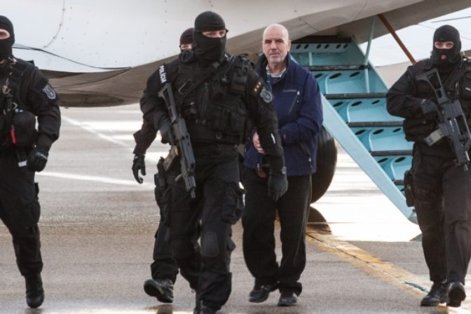Tanner Glass z HC'05 Banská Bystrica (štvrtý zľava) počas 33. kola slovenskej hokejovej Tipsport extraligy 2012/2013 medzi Hkm Zvolen – HC'05 Banská Bystrica. Foto: SITA/Ján Viazanička