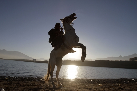 Muž si užíva jazdu na svojom koni pri jazere Qargha v afganskom Kábule. Foto: SITA/AP Photo/Ahmad Jamshid